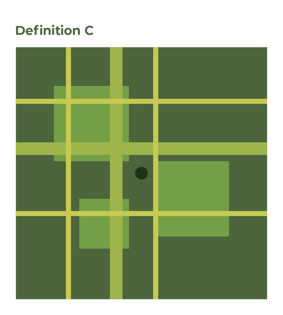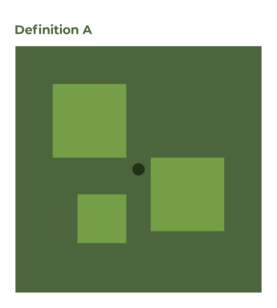 - Definition A: includes large polygonal disturbances (forest harvest blocks, well pads, industrial facilities).