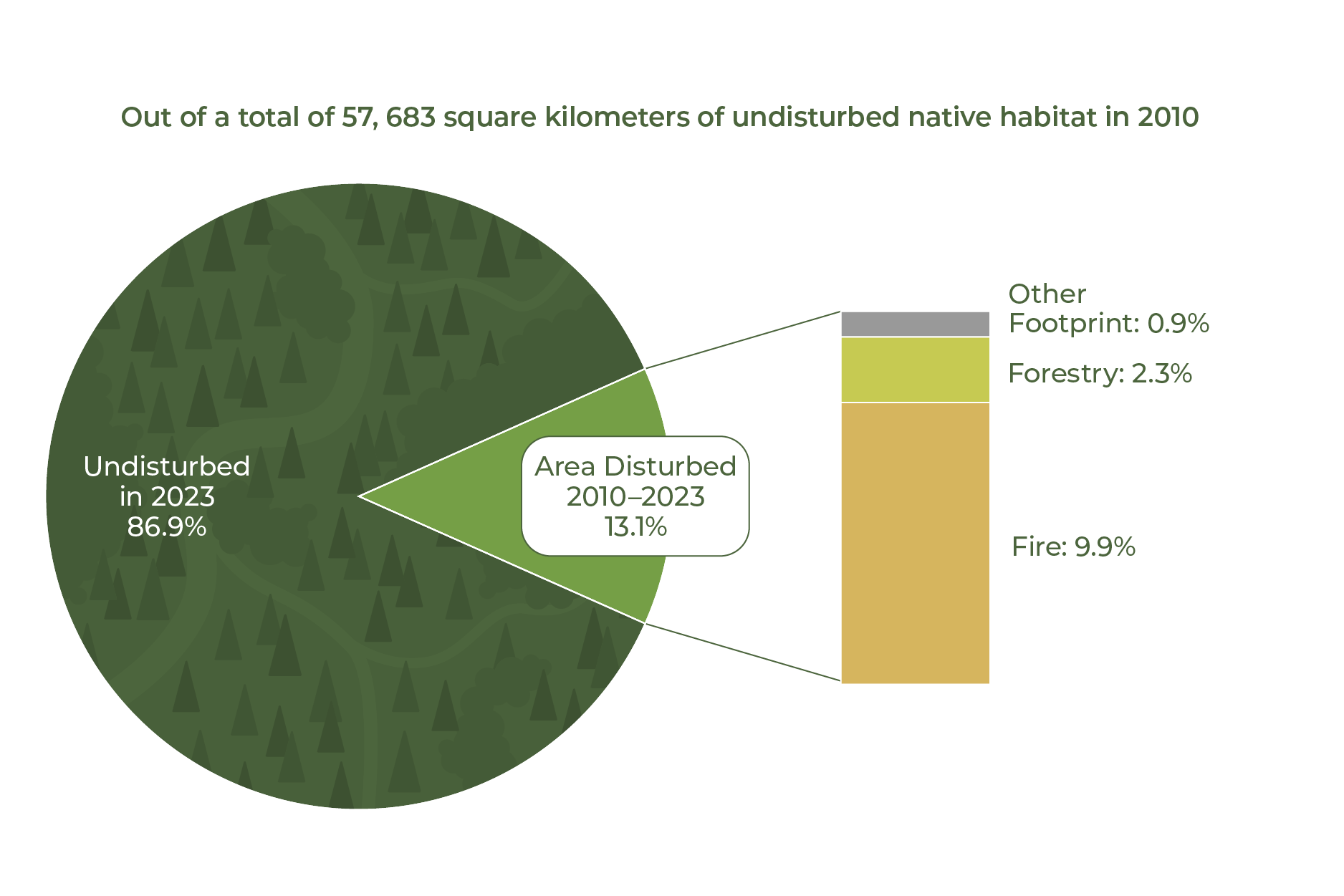 - As of 2023, undisturbed native vegetation made up 90.9% of the land base.
